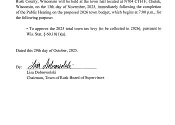 Please take note that the biennial Town Caucus Meeting for the Town of Rusk, Rusk…